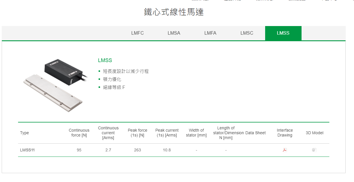 铁心式直线电机系列有:LMFC LMSA LMFA LMSC