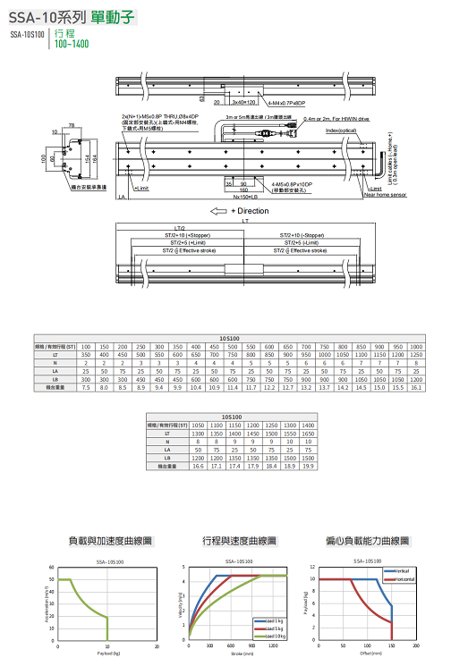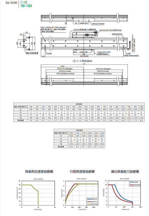 ●高刚性结构:高乘载荷重 ●低速度涟波:补偿后速度涟波≦1%@250mm/s