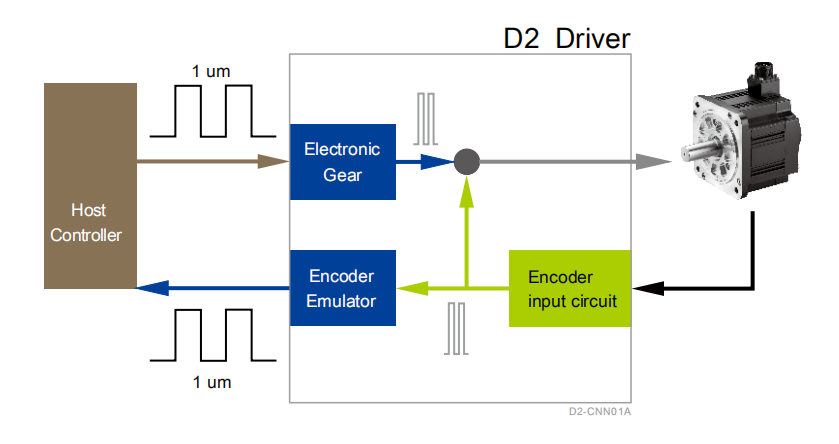 驱动器可以帮助使用者调整上位控制器脉波指令的解析度,得以和各式不同的解析度的